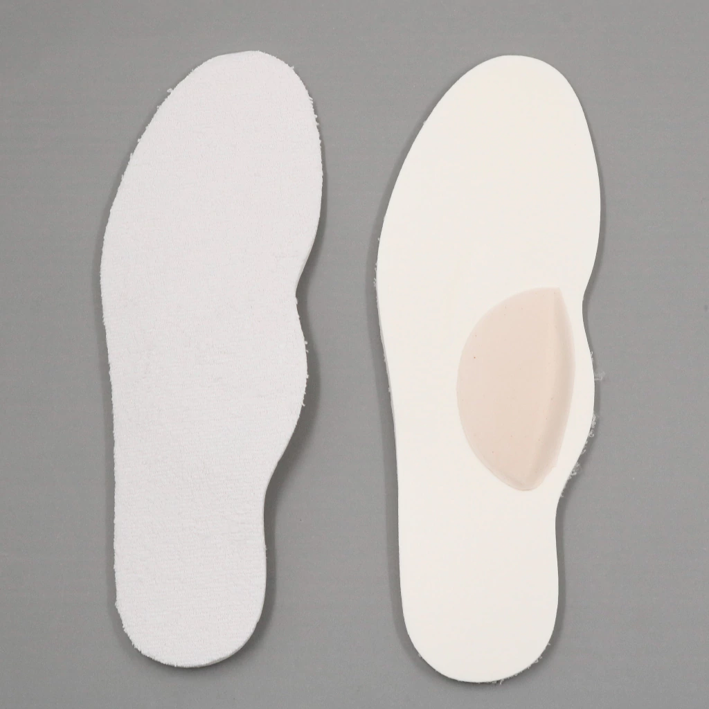 Plantillas confeccionadas en material toalla con soporte anatómico de arco, modelo ART10, grosor de 5 mm y tallas N32 a 45. Ideales para mejorar la comodidad y absorción en calzado deportivo y casual, proporcionando soporte y frescura durante el uso.