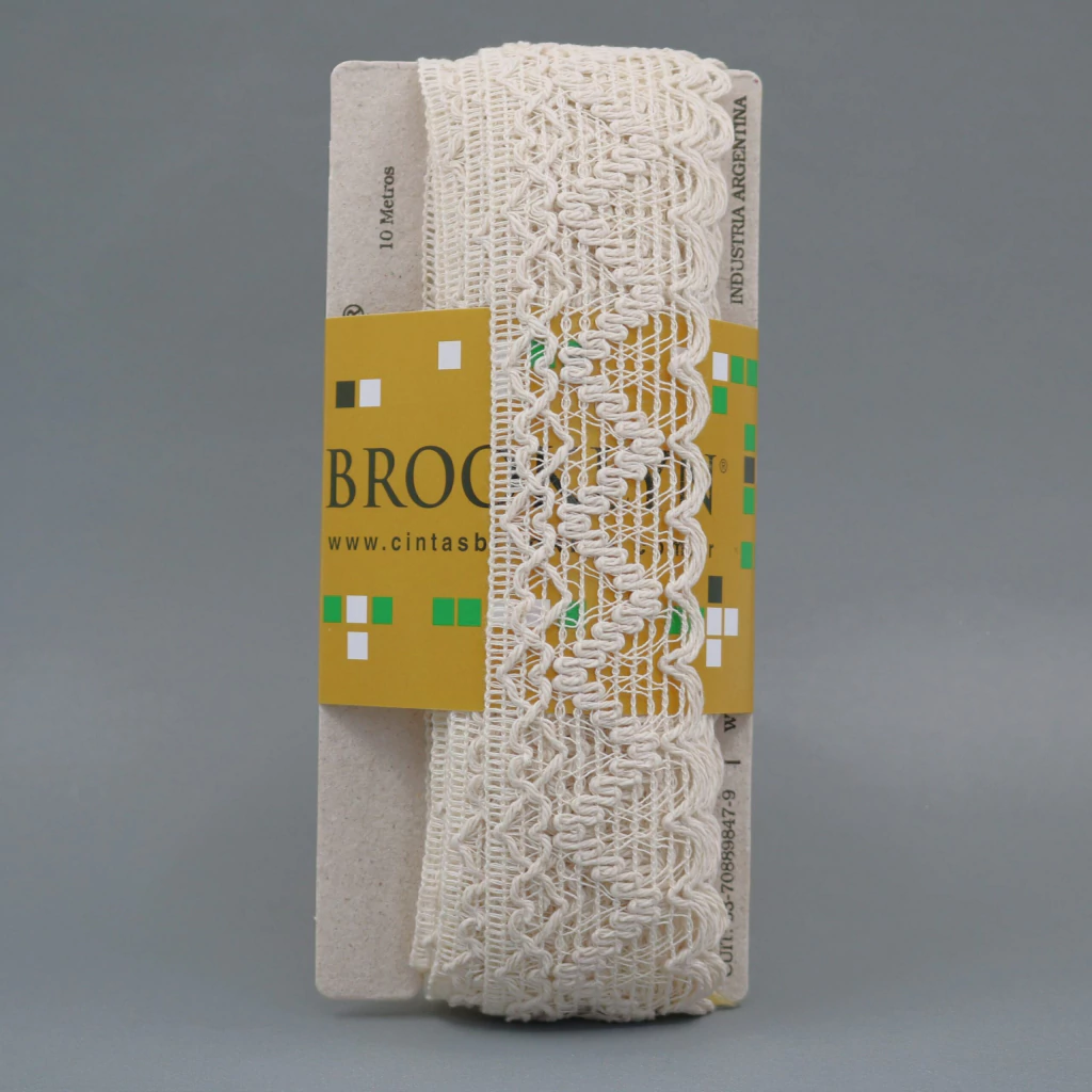 La puntilla Cuore A.4032 de algodón 100% en color crudo, con 40 mm de ancho y 10 metros de largo, es perfecta para terminaciones decorativas en costura, confección y decoración textil. Su delicado diseño de corazones aporta un toque romántico y artesanal a prendas, ropa de hogar, cortinas, mantelería y accesorios hechos a mano.