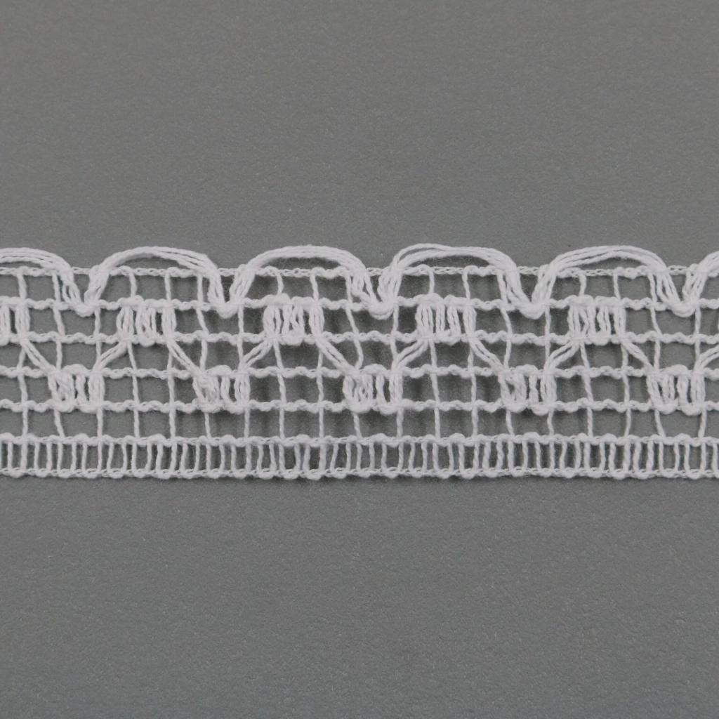 La puntilla de algodón blanco de 25 mm de ancho es una excelente opción para decorar prendas, accesorios, artículos textiles, proyectos de costura y manualidades. Su diseño clásico y delicado aporta un acabado artesanal y prolijo.