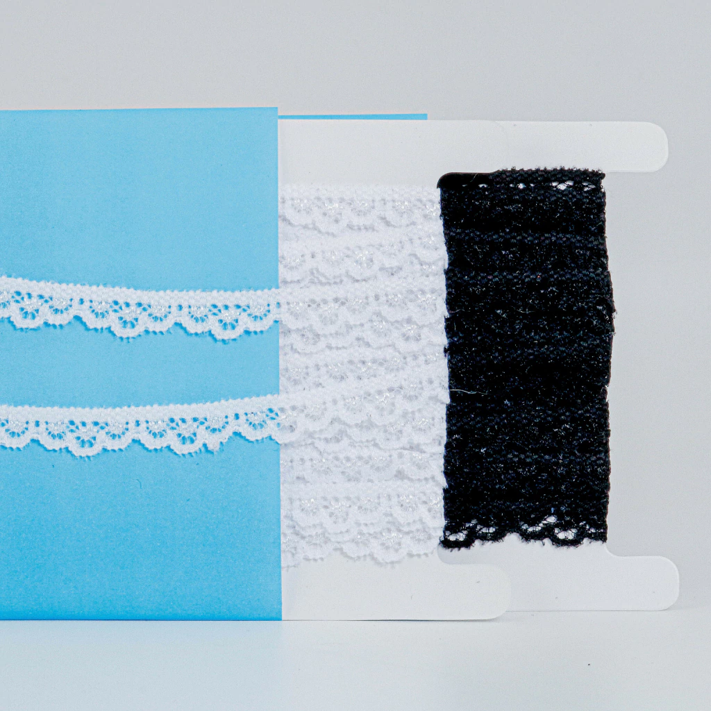 La puntilla de lycra Bruselas artículo 42510 de 11 mm es perfecta para lencería, ropa interior, confección y decoración. Su material elástico permite un ajuste cómodo y flexible, adaptándose a distintas prendas y proyectos. Presentada en rollo de 10 metros, es ideal para uso profesional o artesanal.