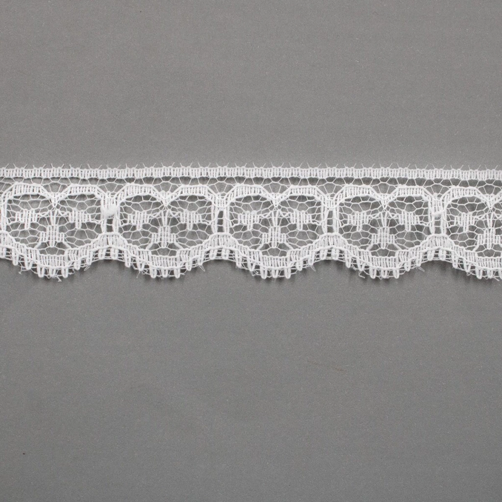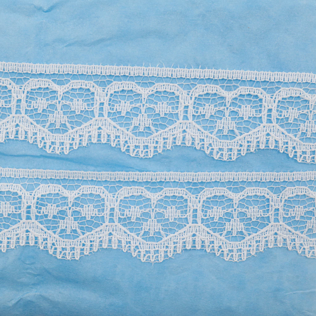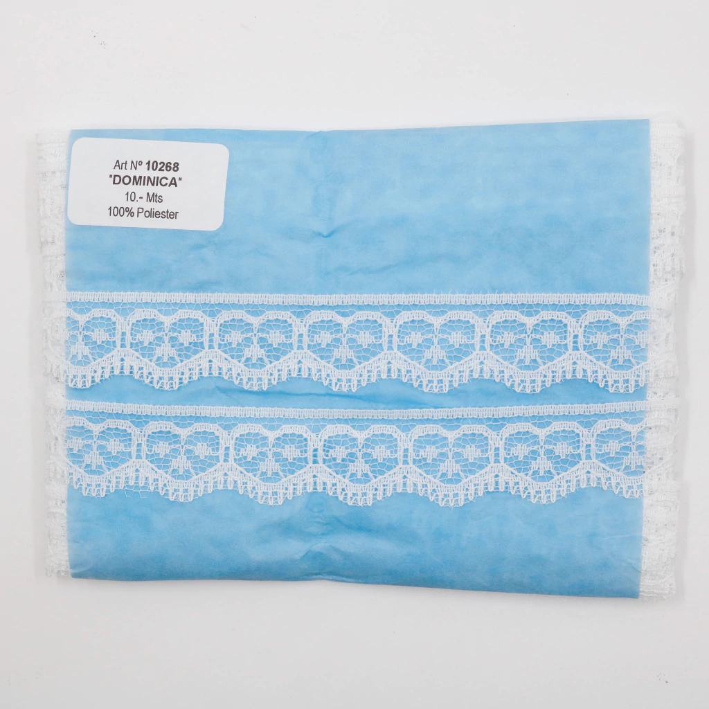La puntilla de nylon NRV Dominica en color blanco ofrece un diseño delicado y versátil, perfecta para dar un toque elegante a prendas, lencería, accesorios o proyectos decorativos. Su ancho de 22 mm es ideal para terminaciones finas y detalles sutiles.