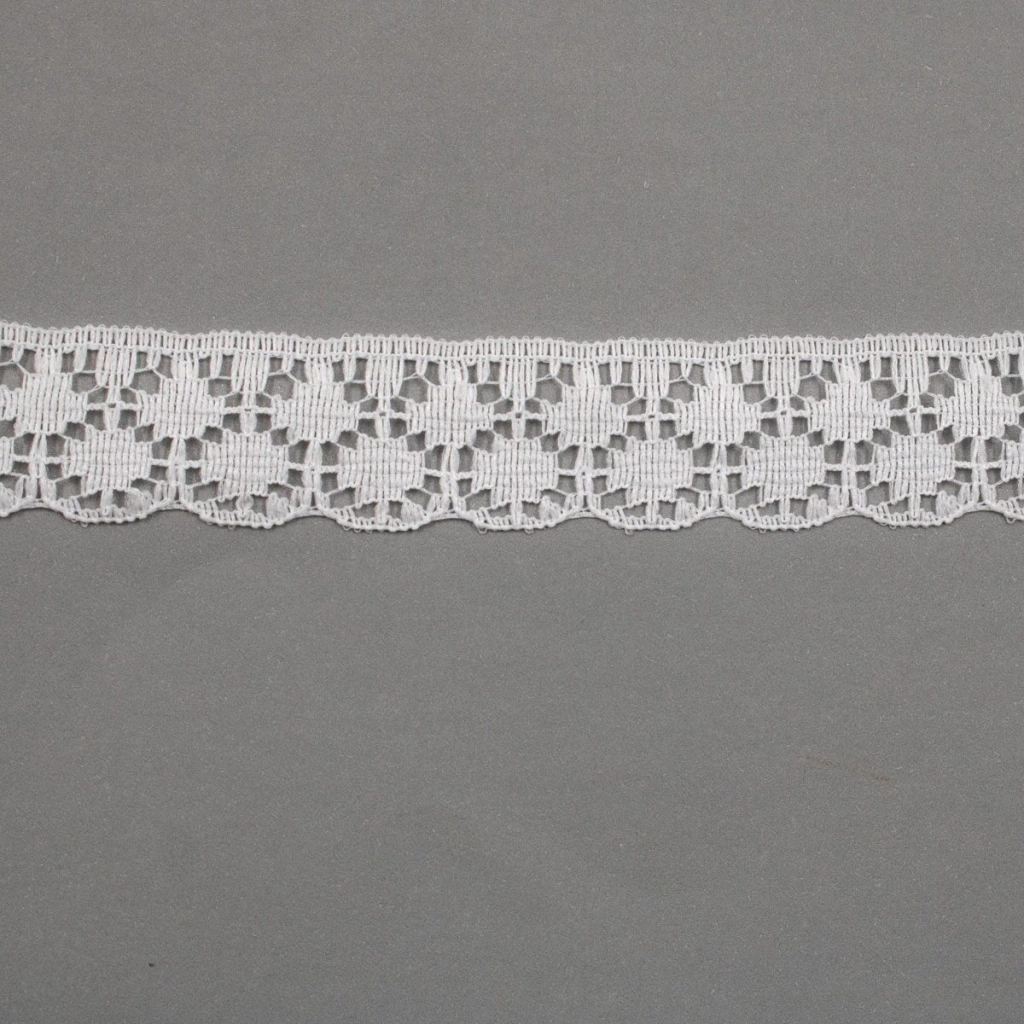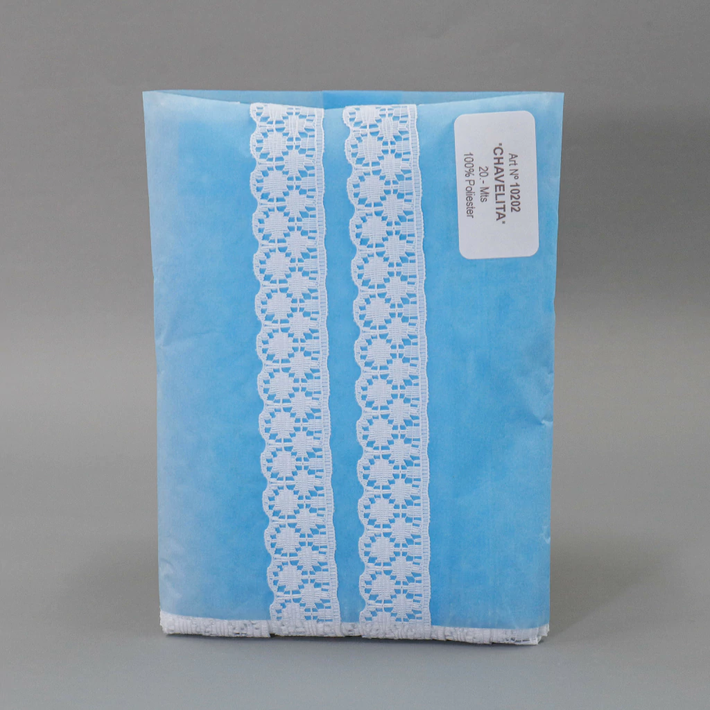 La puntilla de nylon Chavelita de 20 mm en color blanco es perfecta para aportar un toque delicado y elegante a tus creaciones. Su diseño fino y resistente la hace ideal para costura, decoración de prendas, lencería, manualidades y detalles para el hogar.
