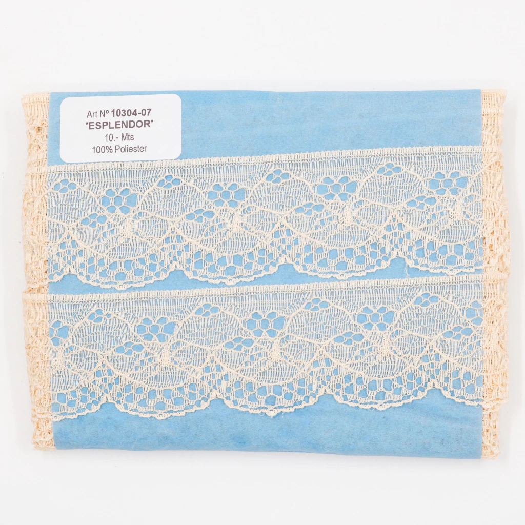 La puntilla de nylon NRV Esplendor en colores surtidos, con un ancho de 40 mm, es ideal para proyectos de confección, decoración y manualidades que requieren un acabado elegante y resistente. Aporta un toque decorativo y sofisticado a prendas, accesorios y creaciones artesanales.