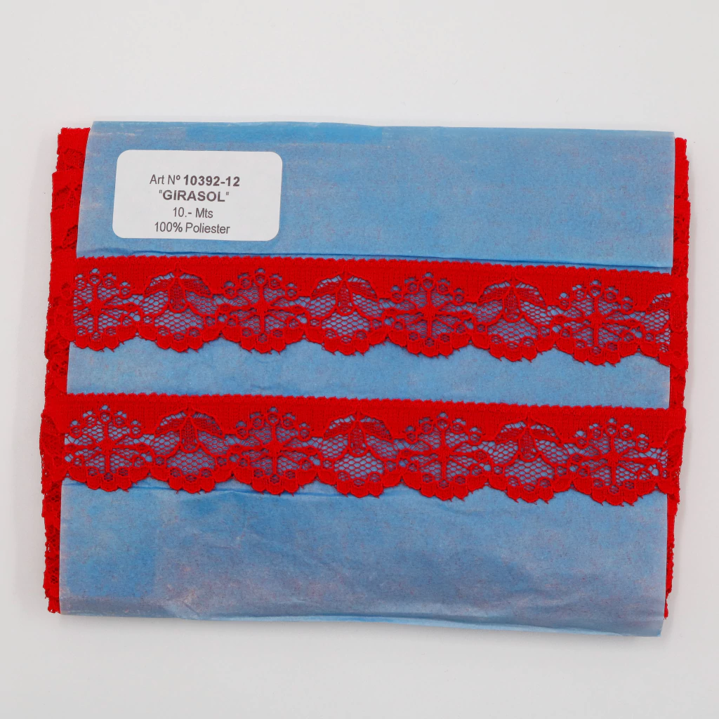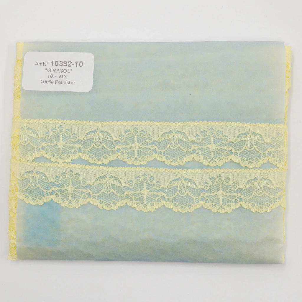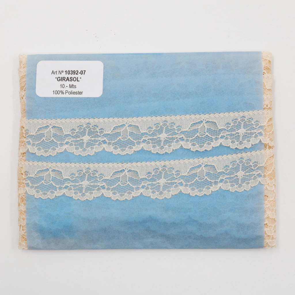La puntilla de nylon NRV Girasol en colores surtidos, con un ancho de 20 mm y 10 metros de largo, es ideal para manualidades, confecciones y decoración que requieren un acabado delicado y vistoso. Su diseño versátil y colorido aporta un toque creativo a prendas, accesorios y proyectos artesanales.