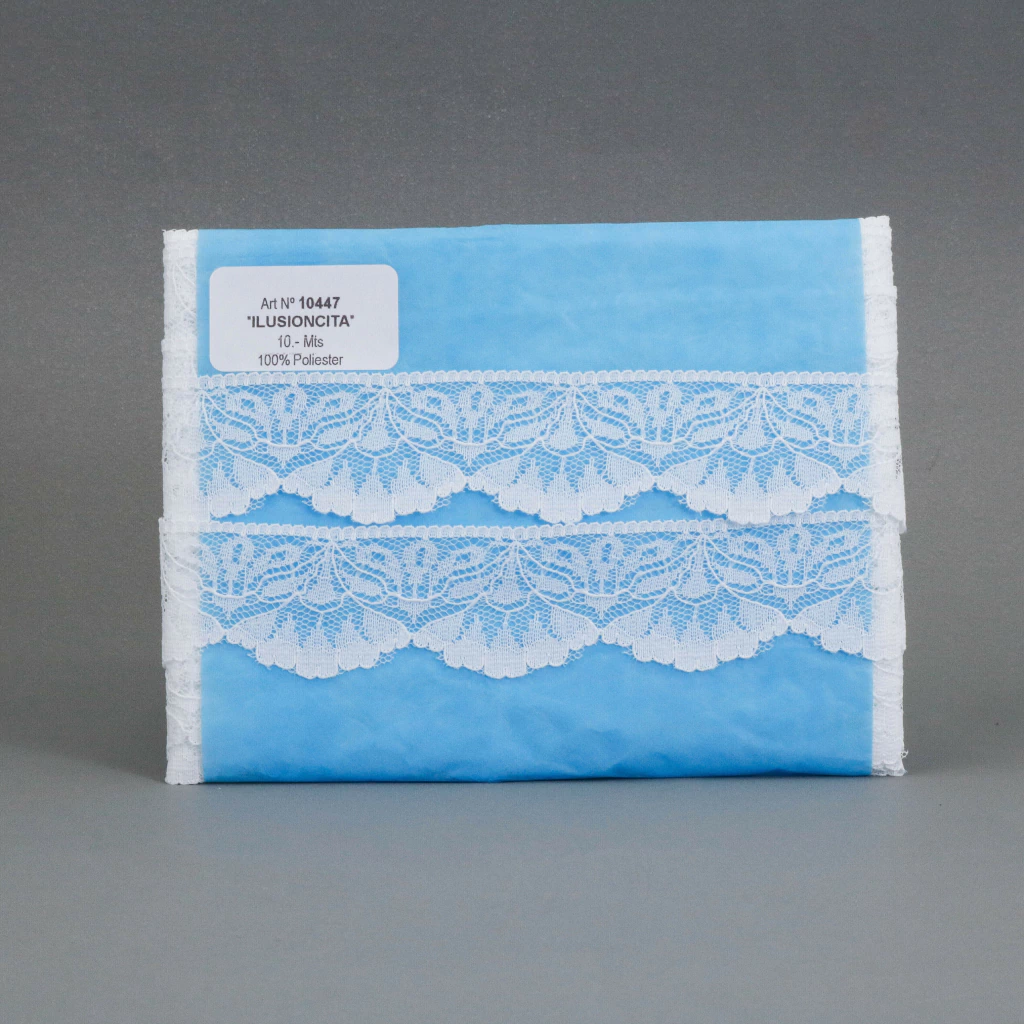 La puntilla de nylon NRV Ilusioncita en color blanco combina suavidad, resistencia y un diseño delicado que realza cualquier proyecto de costura. Su ancho de 35 mm la hace perfecta para decorar prendas, ropa de bebé, lencería y artesanías con un acabado elegante.