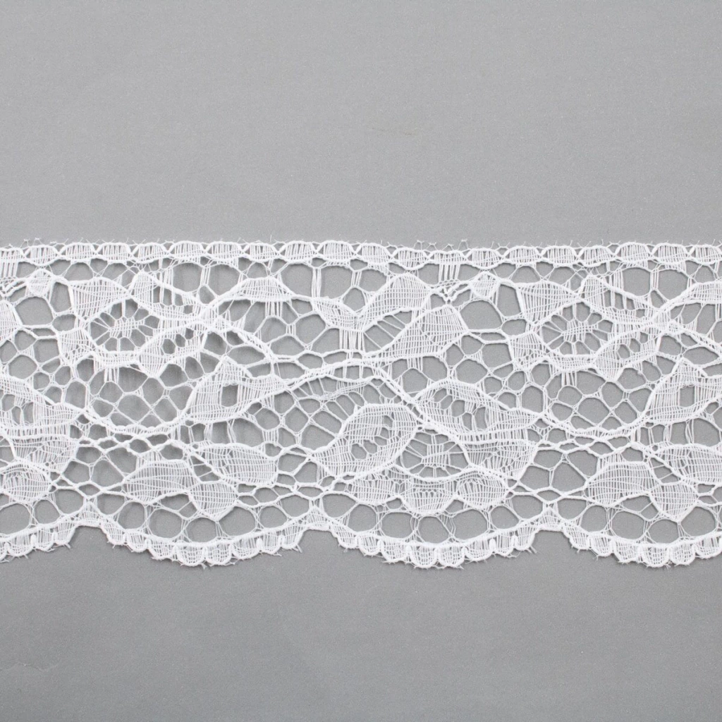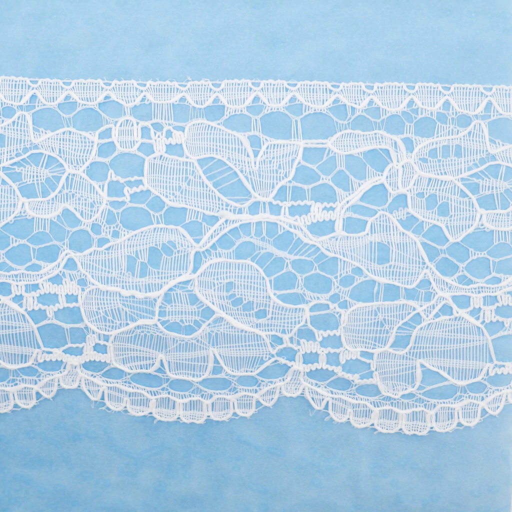 La puntilla de nylon NRV Kiki en color blanco, con un elegante diseño y 55 mm de ancho, es perfecta para embellecer prendas, ropa de hogar, mantelería y proyectos de manualidades. Su textura delicada y resistente brinda un acabado fino y duradero a cualquier creación.