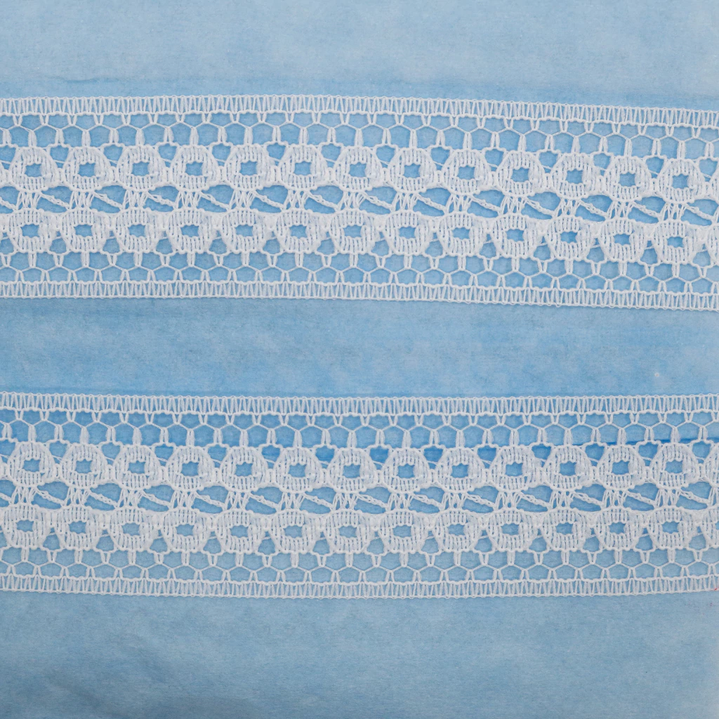 La puntilla de nylon NRV Pepitas Dobles en color blanco, con un ancho de 25 mm y 10 metros de largo, es ideal para manualidades, confecciones y decoración que requieren un acabado delicado y resistente. Su diseño de pepitas dobles aporta un toque elegante y distintivo a prendas, accesorios y proyectos creativos.