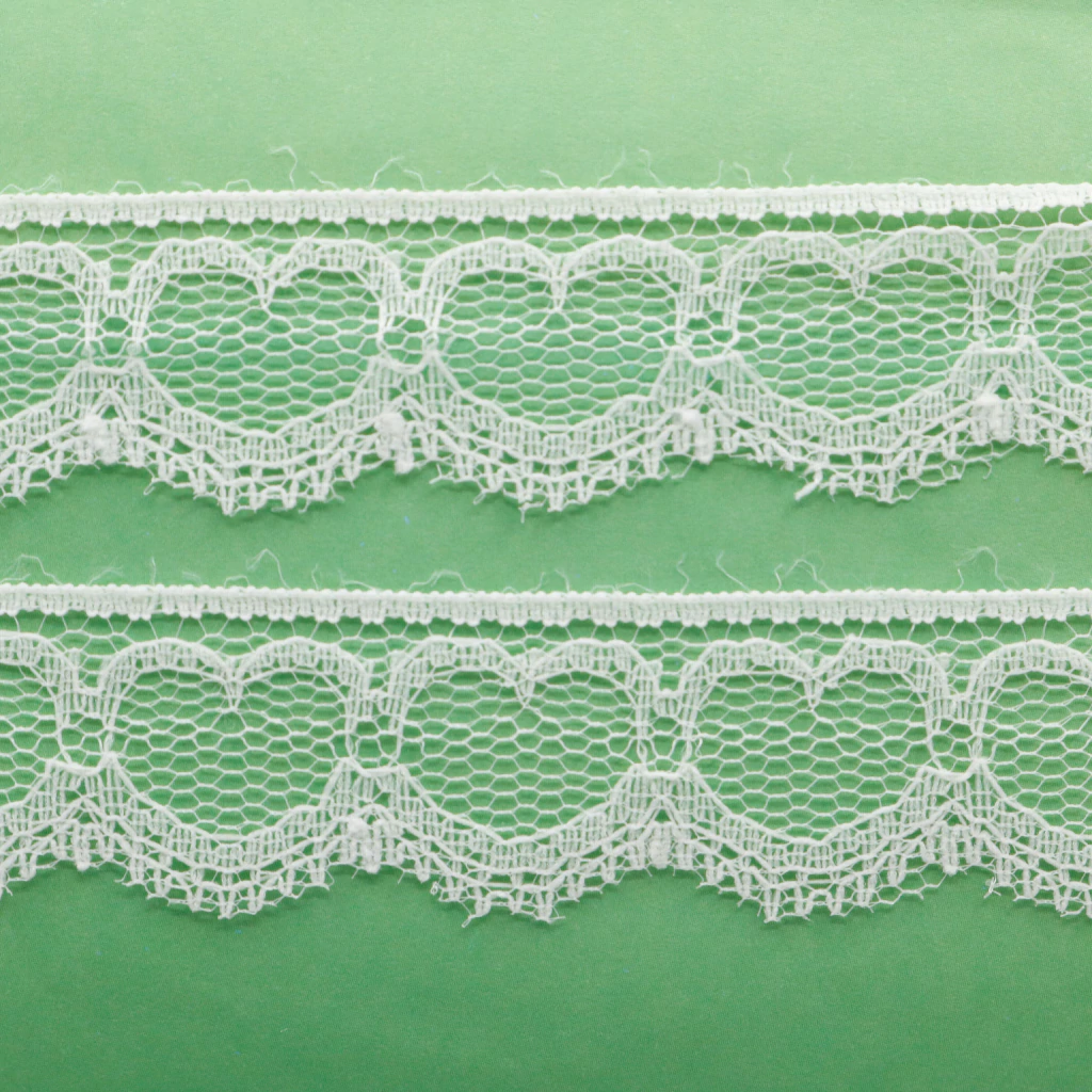 La puntilla de nylon de 20 mm artículo 1030 en color blanco es ideal para costura, confección, decoración y artesanías. Su diseño delicado y versátil aporta un acabado elegante y prolijo a prendas, accesorios y proyectos creativos. Se presenta en rollo de 20 metros, perfecta para uso profesional o doméstico.