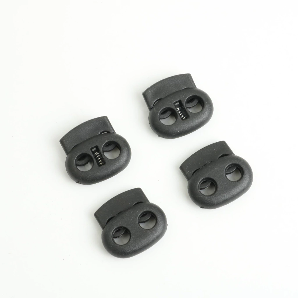 La tanca doble negra grande de 24 mm es ideal para ajustar cordones en mochilas, camperas, bolsos, buzos y prendas deportivas. Fabricada con material resistente, su mecanismo de resorte asegura un cierre firme y duradero. Presentación en pack de 500 unidades importadas, ideal para producción a gran escala.