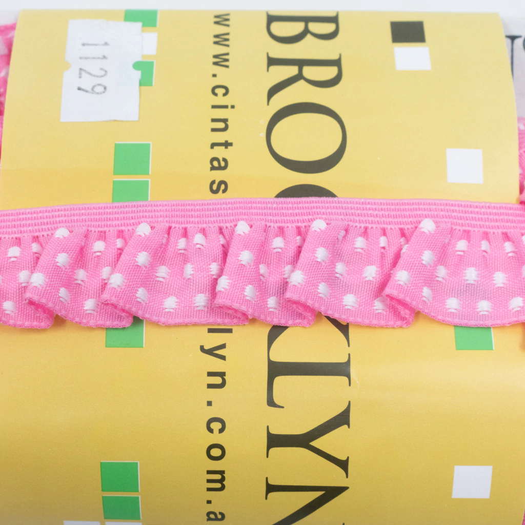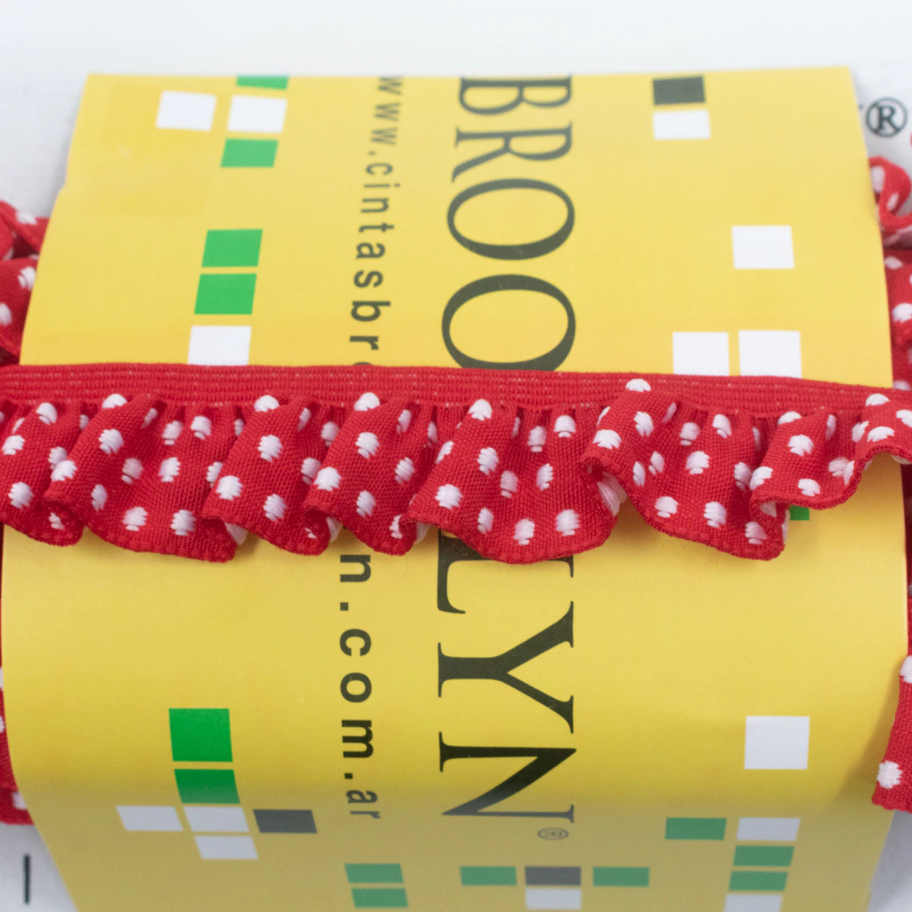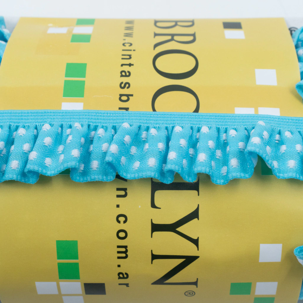La puntilla volado con lunares elástico Brooklyn A1129 de 20 mm de ancho combina estilo y funcionalidad para darle un toque alegre y sofisticado a tus prendas y proyectos textiles. Su elasticidad garantiza comodidad y ajuste, mientras que el diseño con lunares aporta un detalle divertido y clásico. Ideal para terminaciones, aplicaciones y manualidades.