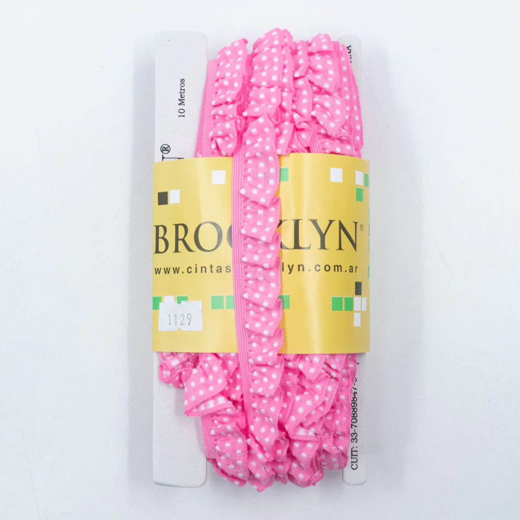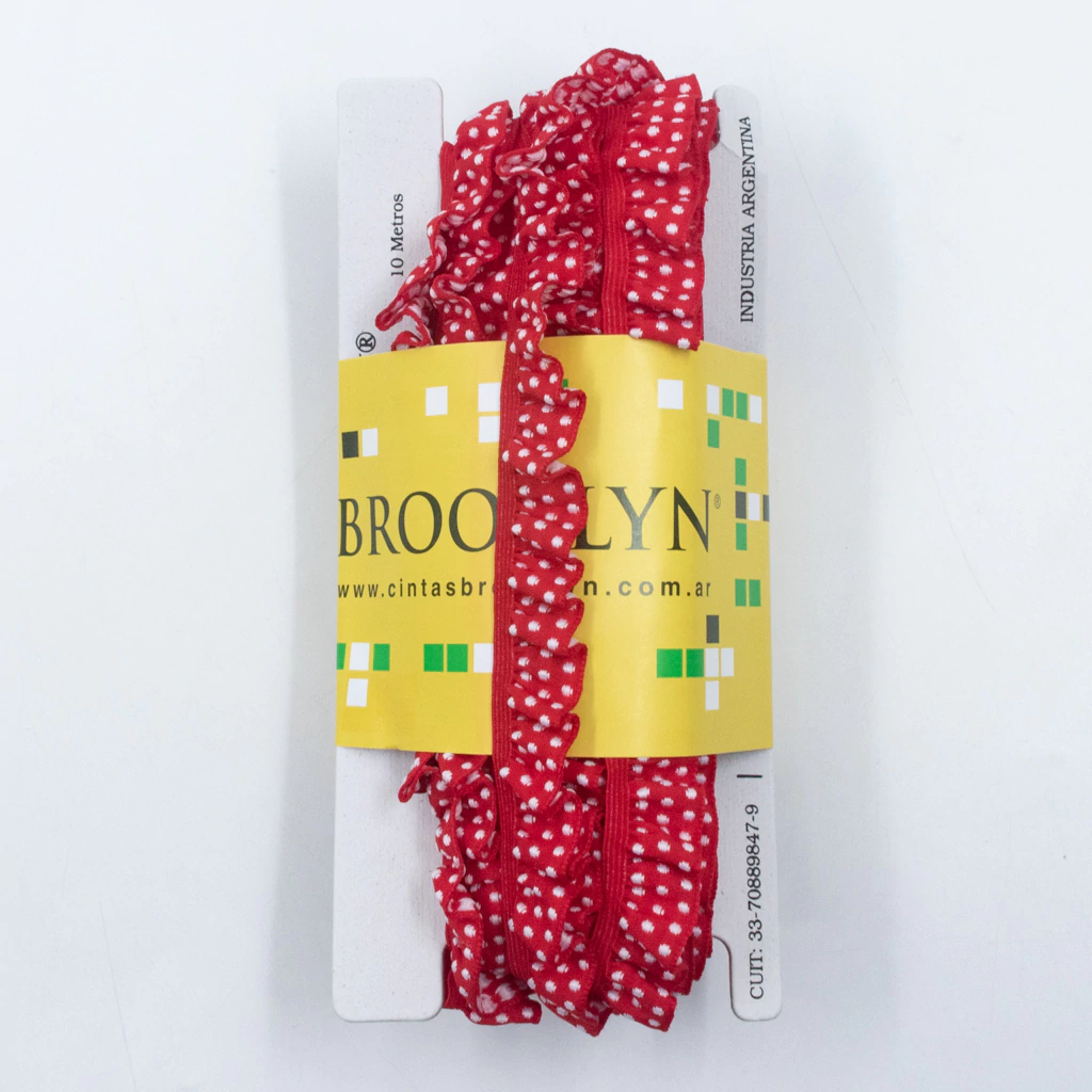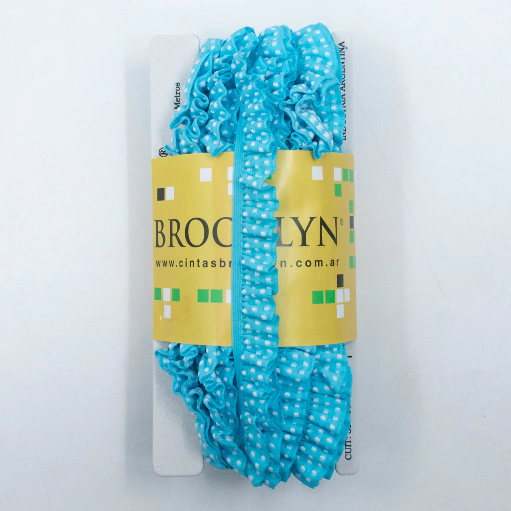 La puntilla volado con lunares elástico Brooklyn A1129 de 20 mm de ancho combina estilo y funcionalidad para darle un toque alegre y sofisticado a tus prendas y proyectos textiles. Su elasticidad garantiza comodidad y ajuste, mientras que el diseño con lunares aporta un detalle divertido y clásico. Ideal para terminaciones, aplicaciones y manualidades.